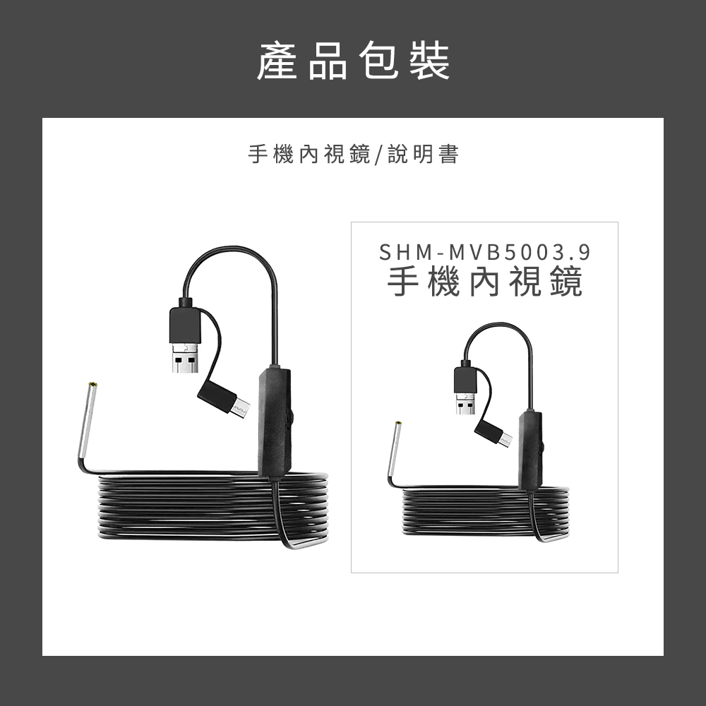 產品名稱:SHM-MVB5003.9_手機內視鏡(5米硬線/3.9mm鏡頭)
