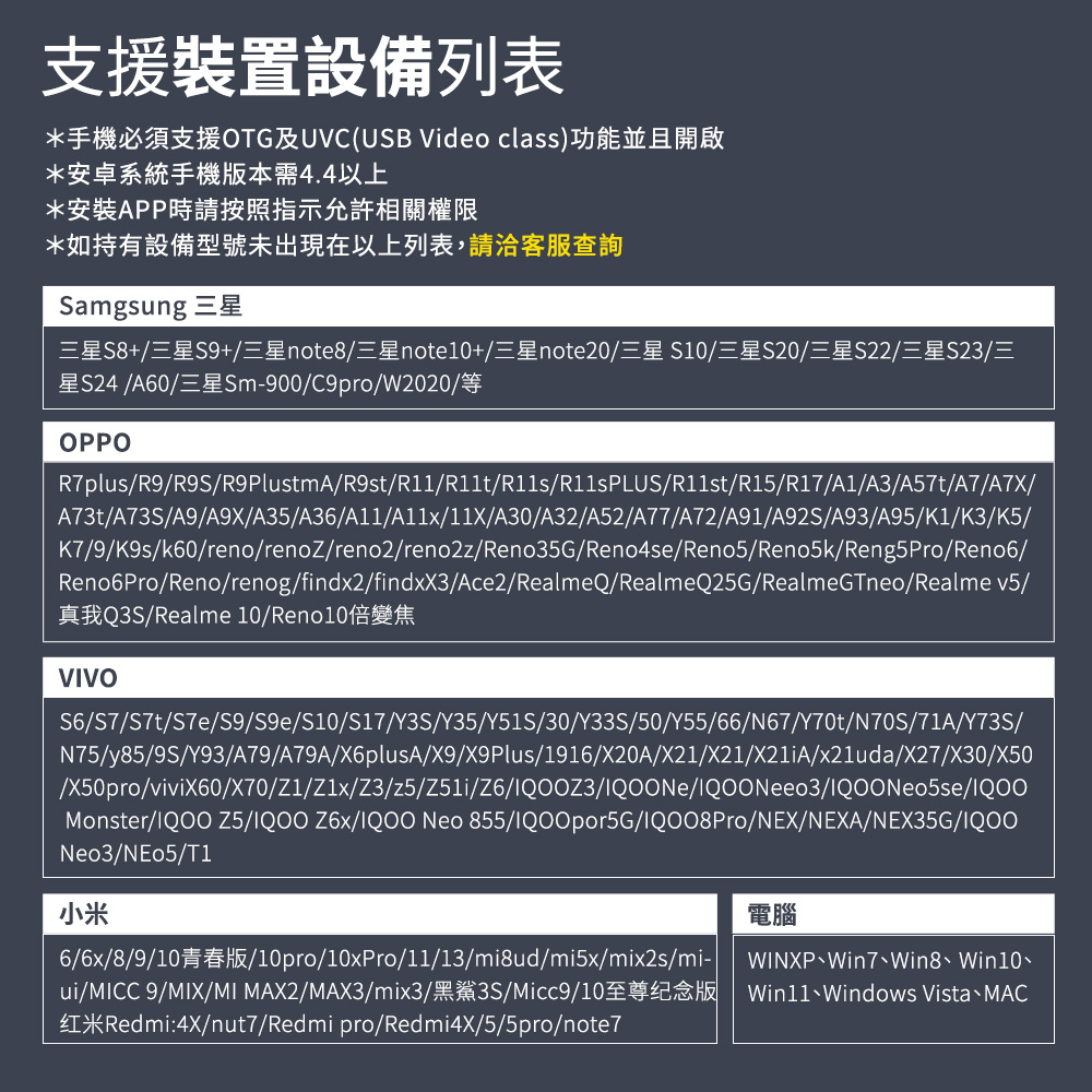 Q1:這款手機內視鏡支援iPhone嗎?